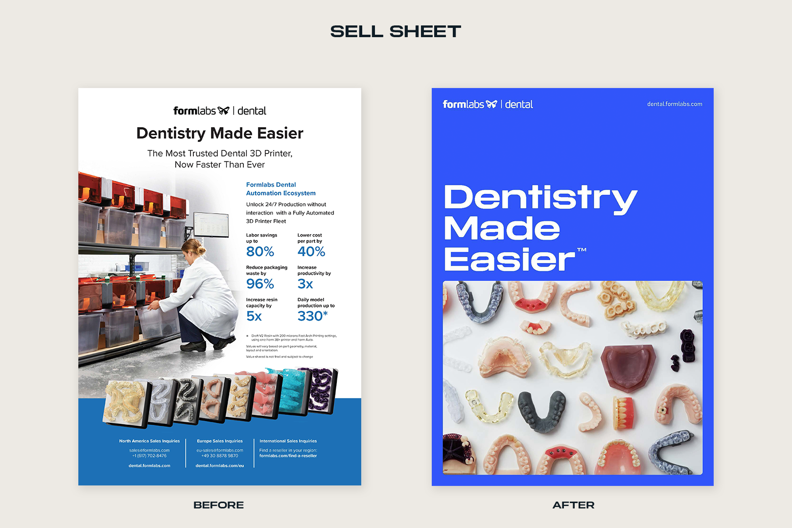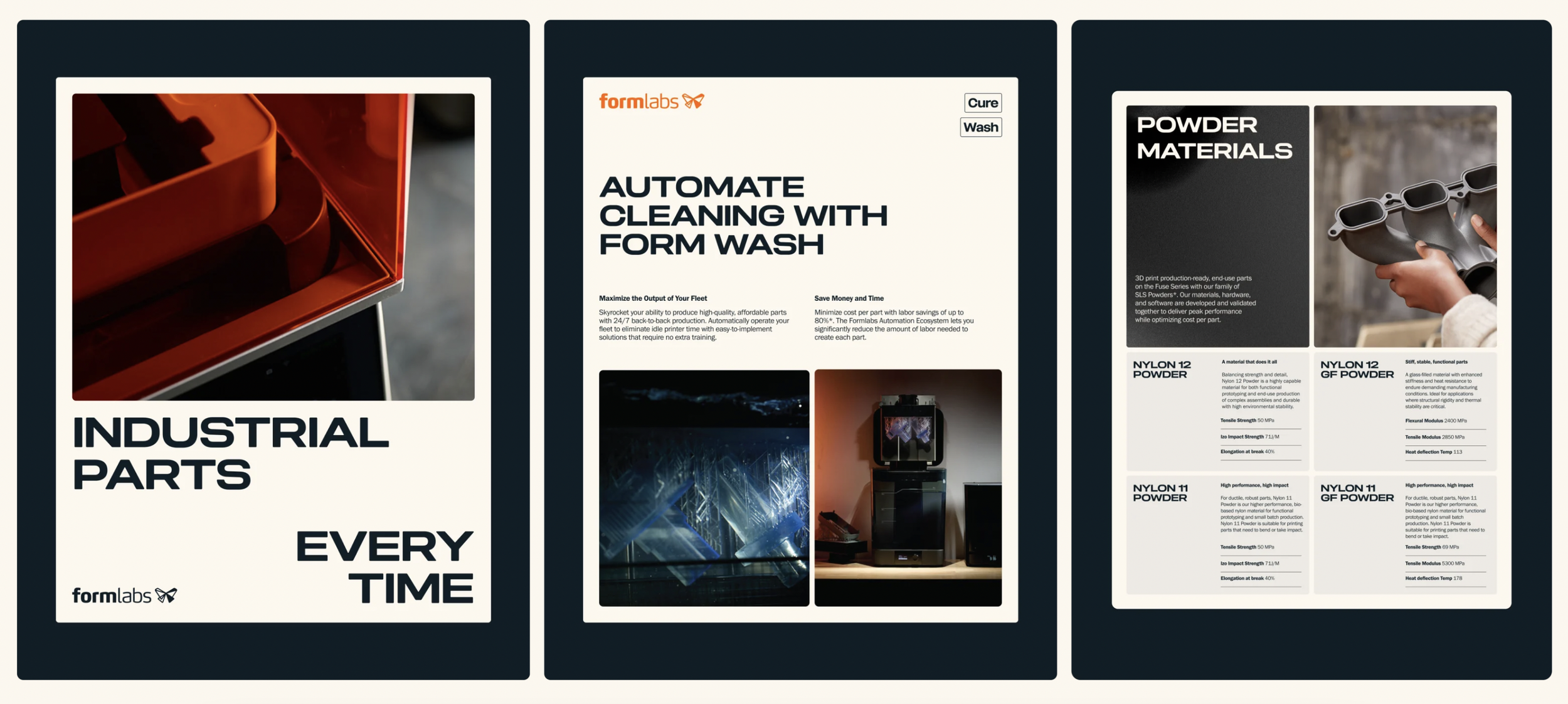 Below are some examples of where the Formlabs brand was before the brand update project. Years of rapid growth left the brand with styles that were unexpressive and with no foundation for consistency across mediums. We were over indexing on the original blue brand color as our only ownable brand style.