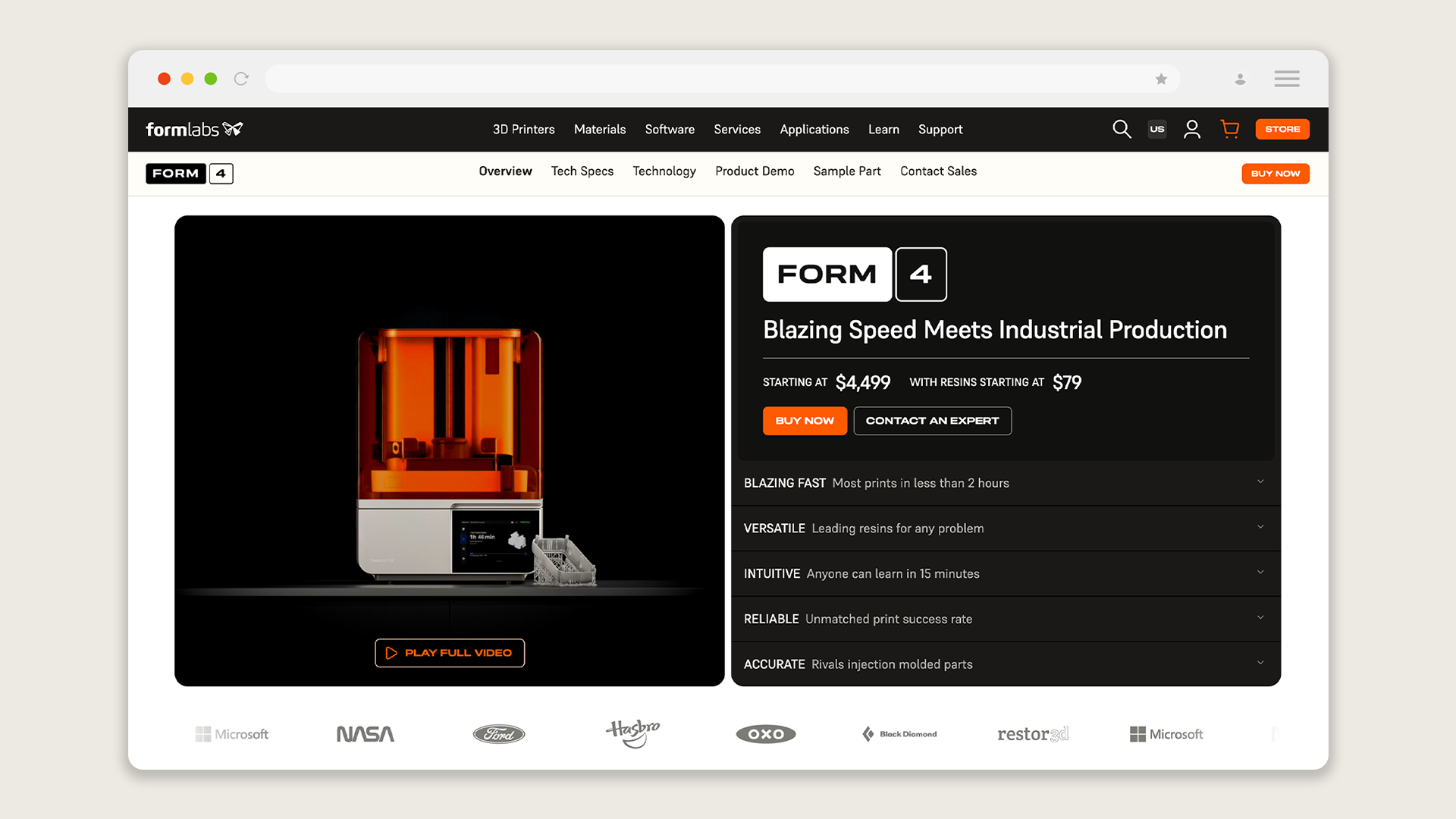 Understanding how customers interact with Formlabs products informed our approach to the website’s design. We conducted user testing using tools like Playbook UX, observing how users navigate prototypes and gathering insights to identify pain points. This iterative process allowed us to refine designs based on real-world feedback before moving into development.
